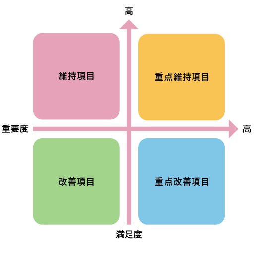 この調査は、総合満足度と5つのカテゴリー(エンゲージメント、職務満足、目標管理制度、処遇・キャリア、人事制度・ワークシチュエーション)で構成された調査で、各設問について「満足度」と各設問が会社生活においてどの程度重要であるかを「重要度」として測定しています。